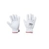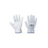 Guanto con palmo, pollice e paraunghie in pelle fiore, dorso in tela con elastico interno, manichetta di sicurezza da 7 cm in tela gommata.